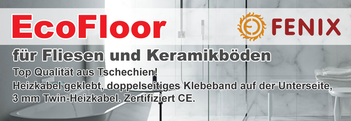 Elektrische Heizmatte FENIX Ecofloor 160 W/m² mit Thermostat Fenix TFT - WIFI schwarz Heizmatte FENIX Ecofloor 160 W/m²: Elektrische Fußbodenheizung in Top-Qualität - Herstellergarantie 20 Jahre. Thermostat Fenix TFT - WIFI: vollfunktionsfähiger Touchscreen, einfache Bedienung über Smartphone / App Dieses Set beinhaltet alle für den Betrieb notwendigen Komponenten. Größen von 1 - 10 m² als Einzelheizmatte, Größen 11 - 20 m² je nach Verfügbarkeit als Kombination von 1 bis 2 Heizmatten. Herstellergarantie auf die Heizmatte 20 Jahre, Thermostat 2 Jahre. Die Heizmatten 160 W/m² FENIX Ecofloor bestehen aus einem zweiadrigen Heizkabel mit voller Schutzumflechtung. Sie sind 50 cm breit, und haben eine Anschlussleitung von 3 m Länge. Die Matten sind mit Klebeband zur Befestigung auf dem Boden versehen. Heizmatte mit 160 W/m², sehr gut geeignet für Neubauobjekte, zur Altbausanierung und Renovierung. Gut geeignet als Raumheizung, für Badezimmer oder Küche. Vorteile elektrische Heizmatte: Schnelle und einfache Installation, Selbstklebebänder Heizkabel auf das Glasfasergewebe geklebt optimaler Schleifenabstand Die Heizmatte Ecofloor besteht aus einem zweiadrigen Heizkabel, das mit einem Fixierklebeband auf einer Unterlage aus Glasfasergewebe befestigt ist. Beide Randklebebänder sind doppelseitig und gewährleisten eine gute Anhaftung der Matte an den vorhandenen Fußboden und ermöglichen ihre einfache und schnelle Installierung. Das Heizkabel besitzt eine Schutzumflechtung, die einen erhöhten Schutz in den Räumen bietet, wo es von der entsprechenden Norm gefordert wird (Badezimmer, Waschräume, u.ä.). Die Schutzumflechtung erfüllt laut Norm IEC 800 die Anforderungen an ein Metallgitter oder eine Metallummantelung.Die Heizmatte kann direkt unter den Fliesen im Fliesenkleber installiert werden.Bei einem anderen Bodenbelag z.B. Laminat oder Teppich wird die Heizmatte in Flex-Ausgleichsmasse eingespachtelt. (Überdeckung 5-10 mm).Direkt unter dem neuen Bodenbelag verlegt, sorgen unsere Dünnbettheizmatten mit wenig Aufwand schnell für Wärme im gesamten Raum. Thermostat Fenix TFT Wifi / Wlan für elektrische Fußbodenheizung Digitales Thermostat Fenix TFT WiFi kann über das Touch-Display oder alternativ über Smartphone App bedient werden.Die App ist sowohl für iPhone, als auch Android kostenlos erhältlich. Das Thermostat kann in mehreren unterschiedlichen Modi betrieben werden: Programm-Modus: Es können Zeiten programmiert werden, zu denen der Thermostat eine bestimmte Temperatur halten soll. Manueller Betrieb: der Thermostat hält dauerhaft die aktuell eingestellte Temperatur. Timer-Modus: hier wird für einen frei wählbaren Zeitraum eine frei wählbare Temperatur gehalten. Frostschutz-Modus: beim Unterschreiten einer frei wählbaren Temperatur zwischen 2 - 15°C schalter der Thermostat die angeschlossene Heizung ein und hält diese Temperatur als Mindesttemperatur. Urlaubsmodus: die Temperatur wird abgesenkt bis zu einem Datum, dass Sie vorab einstellen, ab wann die Heizung wieder normal heizen soll. Im Programm-Modus können Sie auf ein bereits vorab eingestelltes Profil zurückgreifen oder eigenes Profil festlegen. Es sind bis zu 10 Schaltpunkte pro Tag möglich. Das Thermostaten kann über die kostenlose App komplett gesteuert. Über die App kann das Thermostat bequem programmiert werden. Die App erhalten Sie sowohl im iTunes-Store für iPhones, als auch im Google Play Store für Android-Handys.