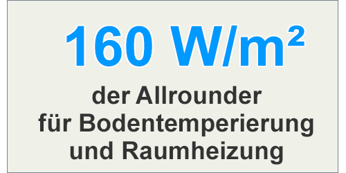 Excellente Fußbodenheizung für Fliesen und Natursteinböden. Die elektrische Heizmatte UltraPro mit 100 W/m² ist für alle fußkalten Bereiche im Alt- und Neubau sehr gut geeignet. Gut geeignet zur Bodentemperierung.Die Heizmatten sind komplett wartungsfrei. Das bedeutet, dass Sie für viele Jahre Wärme und Komfort genießen können. Wartungsfreie Technik und Wärmekomfort auf Knopfdruck.Durch die geringe Aufbauhöhe von nur 3 mm ist der Heizmatte auch bei nachträglichen Renovierungsarbeiten leicht einsetzbar. Heizmatte UltraPro 100: gleichmäßige Erwärmung leistungsoptimiert beste Qualität extra dünn (3mm) Heizkabel genäht starke Klebeseite (Stickymat) abgeschirmte Zweiaderheizleitung / TWIN kein messbares elektromagnetisches Feld wartungsfrei und langlebig Größen von 1 - 10 m² als Einzelheizmatte, Größen 11 - 30 m² je nach Verfügbarkeit als Kombination von 1 bis 3 Heizmatten. Thermostat RT-50 für elektrische Fußbodenheizung Der Thermostat RT-50 (neue Version) ist ein intelligenter, energiesparender Temperaturregler für elektrische Fußbodenheizungen.. Regelung über Raum- und Bodensensor, somit optimal geeignet für elektrische Fußbodenheizungen.Das Gerät erfüllt die Anforderungen der EU-Ökodesign-Richtlinie. Eigenschaften: Eingebauter Luftsensor und Bodentemperatursensor (Kabel NTC 10 kOhm). Programmierbar, 5 + 2 oder 6 + 1 oder 7 Tage Programm An / aus Schalter LCD-Touchscreen mit Hintergrundbeleuchtung Aktivierung von Sensoren (1, 2, 1 + 2) Ferienprogramm Kindersicherung Manueller Modus Frostschutzfunktion Anzeige für Fehlfunktionen des Sensors Automatische Bildschirmabschaltung Manueller ModusDer Regler ist mit der Funktion manueller Einstellungsmodus ausgestattet. Mit dieser Option stellen Sie eine konstante Temperatur ein, die jederzeitbeibehalten wird. WochenprogrammierungVollautomatische Nutzung durch Programmierung des Reglers, der Regler unterstützt eine 7-tägige Programmierung der Heizzeiten mit 6 Ereignissen pro Tag. Schnelle TemperaturanpassungIm Wochenprogrammbetrieb kann ohne Wechsel des Betriebsmodus die Temperatur schnell über die Pfeiltasten angepasst werden.Diese Einstellung ist temporär und wird mit Erreichen des nächsten programmierten Ereignisses wieder abgeschaltet. Die Montage des Thermostats erfolgt in Standard Unterputz-Schalterdosen, Durchmesser von 68 mm. Lieferumfang: Thermostat RT-50 Bodentemperaturfühler Montagematerial ausführliche Montageanleitung Elektrische Fußbodenheizungen in Top-Qualität - Made in Germany.Praktisches Komplett-Set, mit Thermostat und Fühlerrohr, von 1 bis 30 m² erhältlich. Die elektrische Heizmatte UltraPro mit 100 W/m² ist für alle fußkalten Bereiche im Alt- und Neubau sehr gut geeignet. Gut geeignet zur Bodentemperierung und als Raumheizung.Die Heizmatten sind komplett wartungsfrei. Das bedeutet, dass Sie für viele Jahre Wärme und Komfort genießen können. Wartungsfreie Technik und Wärmekomfort auf Knopfdruck.Durch die geringe Aufbauhöhe von nur 3 mm ist der Heizmatte auch bei nachträglichen Renovierungsarbeiten leicht einsetzbar. Vorteile elektrische Heizmatte UltraPro: extra dünn (Aufbauhöhe 3 mm), dadurch keine Erhöhung des Bodenniveaus hochwertige Heizleiter mit Isolation aus FEP Schnelle und einfache Installation Zweiader- TWIN Tewchnologie Heizkabel auf das Glasfasergewebe vernäht, dadurch einfache Verlegung. 100% Leistung und schnelle Erwärmung durch optimalen Schleifenabstand Modernste Produktionsanlagen und der Einsatz neuester Technologien garantieren hohe Qualtität und 100 Leistung. Die Heizmatte kann direkt unter den Fliesen im Fliesenkleber installiert werden.Bei einem anderen Bodenbelag z.B. Laminat oder Teppich wird die Heizmatte in Flex-Ausgleichsmasse eingespachtelt. (Überdeckung 5-10 mm).Direkt unter dem neuen Bodenbelag verlegt, sorgen unsere Dünnbettheizmatten mit wenig Aufwand schnell für Wärme im gesamten Raum. Lieferumfang: Elektrische Heizmatte für Fliesen 100 W/m² UltraPro Thermostat RT-50 weiß Kunstoffwellrohr für den Temperatursensor Montageanleitung Herstellergarantie auf die Heizmatte 10 Jahre, Thermostat 2 Jahre.