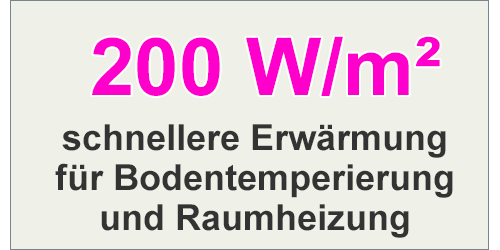 Excellente Fußbodenheizung für Fliesen und Natursteinböden. Die elektrische Heizmatte UltraPro mit 200 W/m² ist für alle fußkalten Bereiche im Alt- und Neubau sehr gut geeignet. Gut geeignet zur Bodentemperierung und als Raumheizung.Die Heizmatten sind komplett wartungsfrei. Das bedeutet, dass Sie für viele Jahre Wärme und Komfort genießen können. Wartungsfreie Technik und Wärmekomfort auf Knopfdruck.Durch die geringe Aufbauhöhe von nur 3 mm ist der Heizmatte auch bei nachträglichen Renovierungsarbeiten leicht einsetzbar. Heizmatte UltraPro 200: Extra stark, schnelle Aufheizzeit leistungsoptimiert beste Qualität extra dünn (3mm) Heizkabel genäht starke Klebeseite (Stickymat) abgeschirmte Zweiaderheizleitung / TWIN kein messbares elektromagnetisches Feld wartungsfrei und langlebig Größen von 1 - 10 m² als Einzelheizmatte, Größen 10 - 16 m² je nach Verfügbarkeit als Kombination von 1 bis 2 Heizmatten. Thermostat RT-50 touchscreen für elektrische Fußbodenheizung Der Thermostat RT-50 (neue Version) ist ein intelligenter, energiesparender Temperaturregler für elektrische Fußbodenheizungen.. Regelung über Raum- und Bodensensor, somit optimal geeignet für elektrische Fußbodenheizungen.Das Gerät erfüllt die Anforderungen der EU-Ökodesign-Richtlinie. Eigenschaften: Eingebauter Luftsensor und Bodentemperatursensor (Kabel NTC 10 kOhm). Programmierbar, 5 + 2 oder 6 + 1 oder 7 Tage Programm An / aus Schalter LCD-Touchscreen mit Hintergrundbeleuchtung Aktivierung von Sensoren (1, 2, 1 + 2) Ferienprogramm Kindersicherung Manueller Modus Frostschutzfunktion Anzeige für Fehlfunktionen des Sensors Automatische Bildschirmabschaltung Manueller ModusDer Regler ist mit der Funktion manueller Einstellungsmodus ausgestattet. Mit dieser Option stellen Sie eine konstante Temperatur ein, die jederzeitbeibehalten wird. WochenprogrammierungVollautomatische Nutzung durch Programmierung des Reglers, der Regler unterstützt eine 7-tägige Programmierung der Heizzeiten mit 6 Ereignissen pro Tag. Schnelle TemperaturanpassungIm Wochenprogrammbetrieb kann ohne Wechsel des Betriebsmodus die Temperatur schnell über die Pfeiltasten angepasst werden.Diese Einstellung ist temporär und wird mit Erreichen des nächsten programmierten Ereignisses wieder abgeschlatet. Die Montage des Thermostats erfolgt in Standard Unterputz-Schalterdosen, Durchmesser von 68 mm. Lieferumfang: Thermostat RT-50 Bodentemperaturfühler Montagematerial ausführliche Montageanleitung Elektrische Fußbodenheizungen in Top-Qualität - Made in Germany.Praktisches Komplett-Set, mit Thermostat und Fühlerrohr, von 1 bis 16 m² erhältlich. Die elektrische Heizmatte UltraPro mit 200 W/m² ist für alle fußkalten Bereiche im Alt- und Neubau sehr gut geeignet. Gut geeignet zur Bodentemperierung und als Raumheizung.Die Heizmatten sind komplett wartungsfrei. Das bedeutet, dass Sie für viele Jahre Wärme und Komfort genießen können. Wartungsfreie Technik und Wärmekomfort auf Knopfdruck.Durch die geringe Aufbauhöhe von nur 3 mm ist der Heizmatte auch bei nachträglichen Renovierungsarbeiten leicht einsetzbar. Vorteile elektrische Heizmatte UltraPro: extra dünn (Aufbauhöhe 3 mm), dadurch keine Erhöhung des Bodenniveaus hochwertige Heizleiter mit Isolation aus FEP Schnelle und einfache Installation Zweiader- TWIN Tewchnologie Heizkabel auf das Glasfasergewebe vernäht, dadurch einfache Verlegung. 100% Leistung und schnelle Erwärmung durch optimalen Schleifenabstand Modernste Produktionsanlagen und der Einsatz neuester Technologien garantieren hohe Qualtität und 100 Leistung. Herstellergarantie auf die Heizmatte 10 Jahre, Thermostat 2 Jahre.