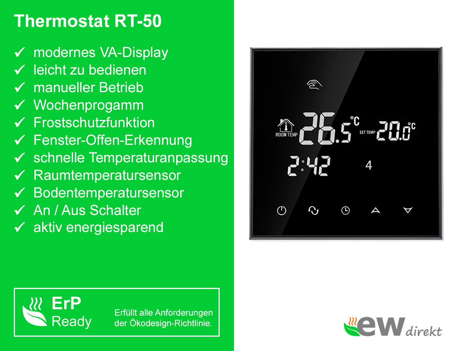 - Thermostat RT-50: in weiß oder schwarz, neueste Technologie, einfache Bedienung, schnelle Temperaturanpassung